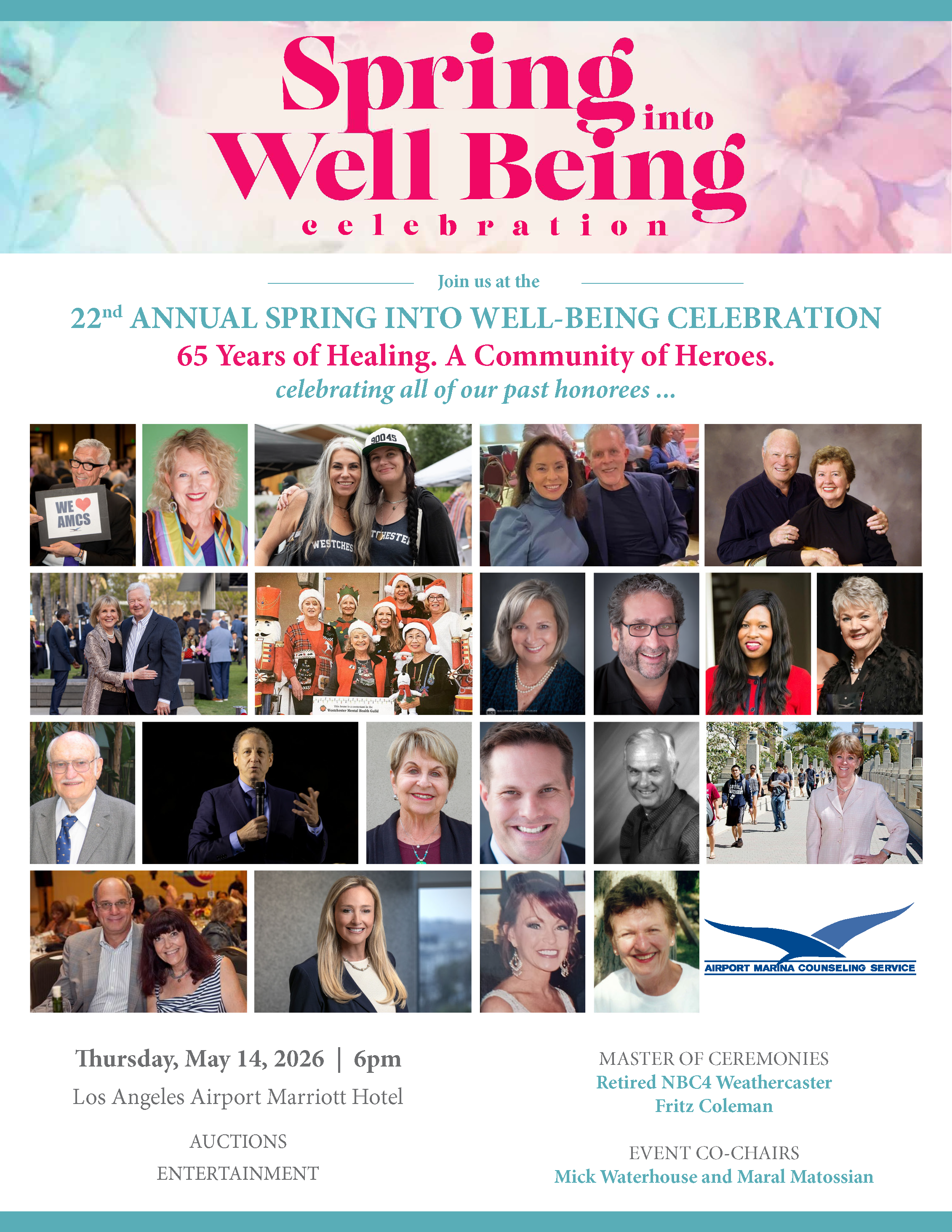 This year's 22nd Annual “Spring into Well-Being Celebration” will be held at 6 p.m. on Thursday, May 14, 2026 at the Los Angeles Airport Marriott Hotel. We will hold an amazing celebration, auctions and more. Join us as we honor 65 Years of Healing – A Community of Heroes, recognizing all of our past honorees. This year's goal is to raise over $350,000.